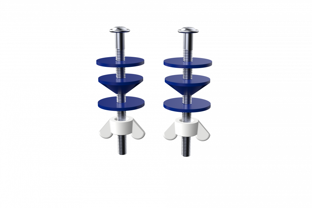Комплект крепежных элементов для крепления сливного бачка к унитазу,М6,длинна винта 85 мм,винт нержавеющая сталь AISI 304,материал конической прокладки эластомер,материал прокладки-шайбы-полиацетал(очень твердый материал)