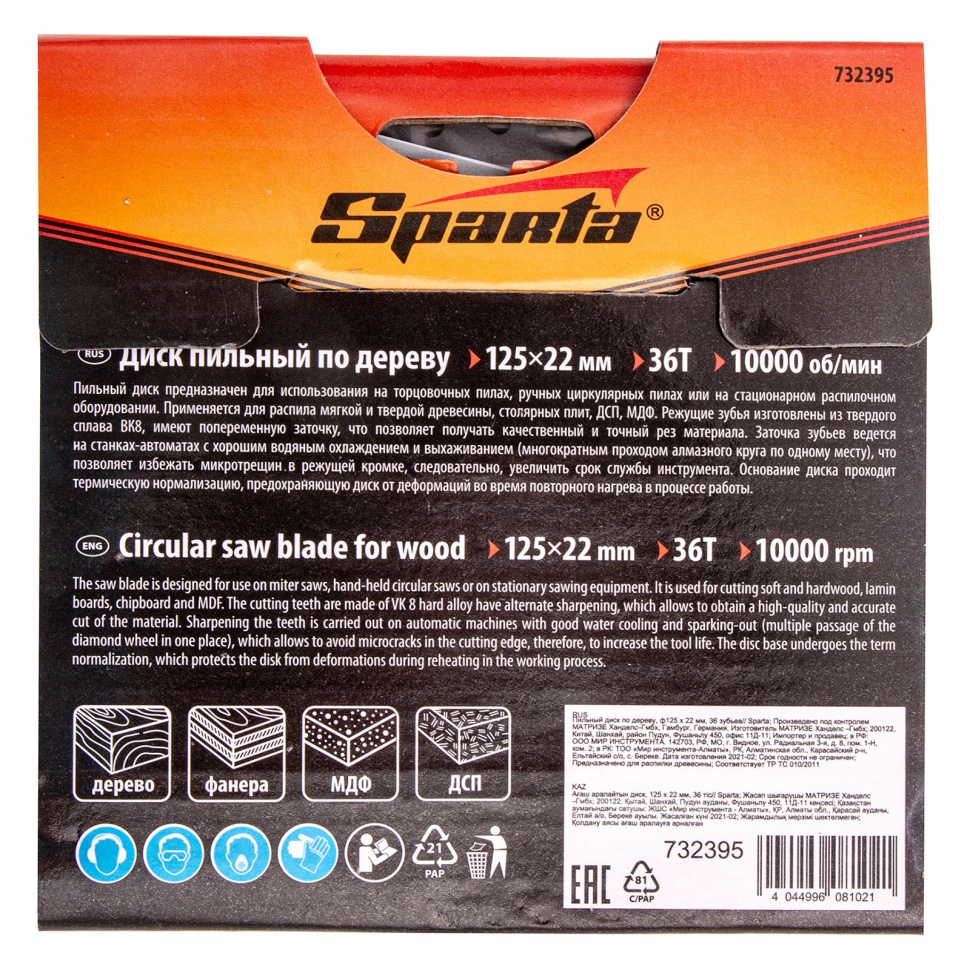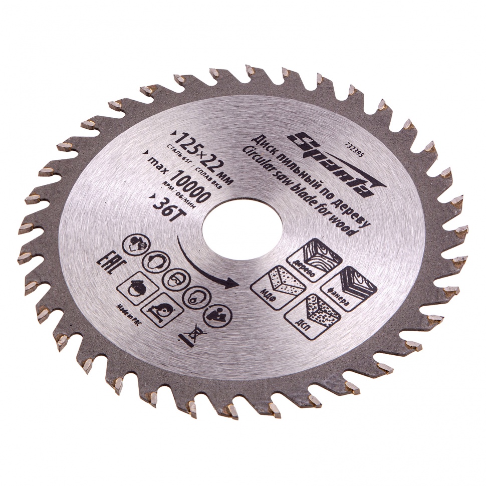 Пильный диск Sparta 732395, ф125 х 22 мм, с 36 зубьями используется для распила древесины мягких и твердых пород, фанеры, плит ДСП и МДФ. 36 зубьев обеспечивают оптимальное по скорости и качеству пиление. Диск устанавливается на торцовочные и циркулярные пилы либо на стационарное распиловочное оборудование, применяется в бытовой сфере. Качественный рез достигается за счет зубцов с попеременной заточкой.