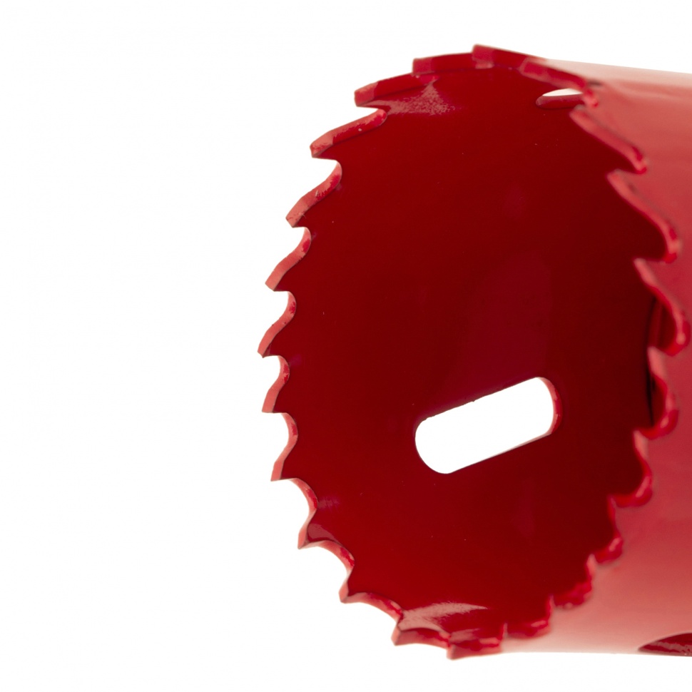 Высокий ресурс и прочность коронки обеспечивается за счет качественных материалов изготовления: корпус выполнен из углеродистой стали, а рабочая часть - из быстрорежущей.
