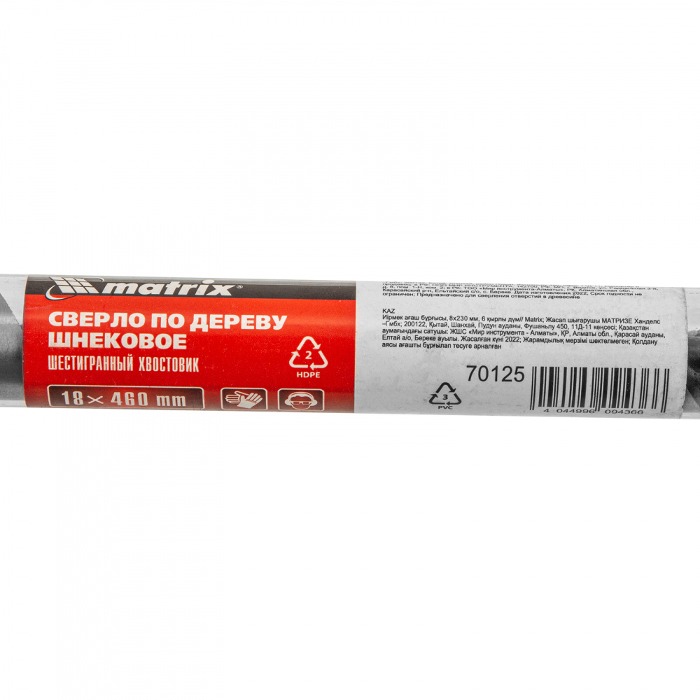 Шнековое сверло по дереву Matrix 70125 размером 18 х 460 мм, с 6-гранным хвостовиком, предназначено для получения глубоких отверстий. Подходит для работы как с мягкими, так и с твердыми породами древесины. Конструкция сверла рассчитана на интенсивное использование с высокими нагрузками в ходе строительных, ремонтных и отделочных работ.
