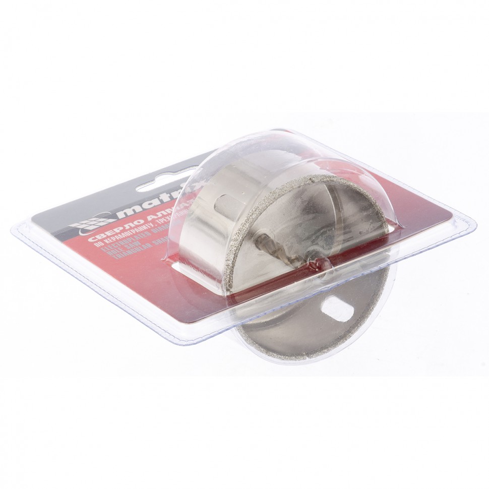Универсальное алмазное сверло по керамограниту Matrix 726753 размером 75 х 67 мм, с 3-гранным хвостовиком, применяется для получения отверстий в стекле, плитке, кафеле. За счет высокой концентрации алмазов в режущем слое оно легко справляется со сверлением керамогранита. Сверло рассчитано на профессиональное использование с дрелями и шуруповертами. Водяное охлаждение в процессе работы значительно повышает срок службы оснастки.