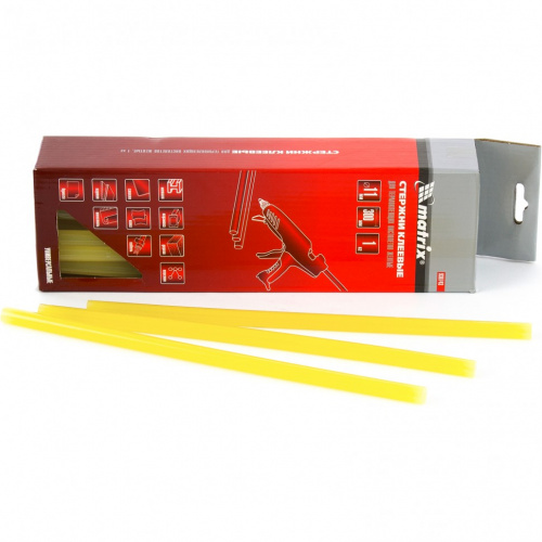 Желтые клеевые стержни Sparta 930743, 11 х 300 мм, используются в качестве расходных материалов для клеевых пистолетов калибра 11 мм. Они обеспечивают качественное и надежное сцепление различных материалов: бумаги, пластика, дерева, керамики, электрических плат и т.д. Также их можно использовать для герметизации швов и трещин.