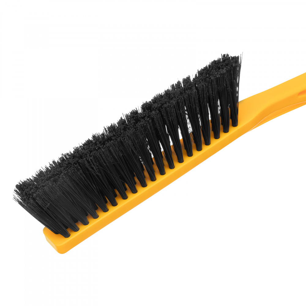 Бережная очистка — распушенная щетина шириной 210 мм не портит лакокрасочное покрытие автомобиля.