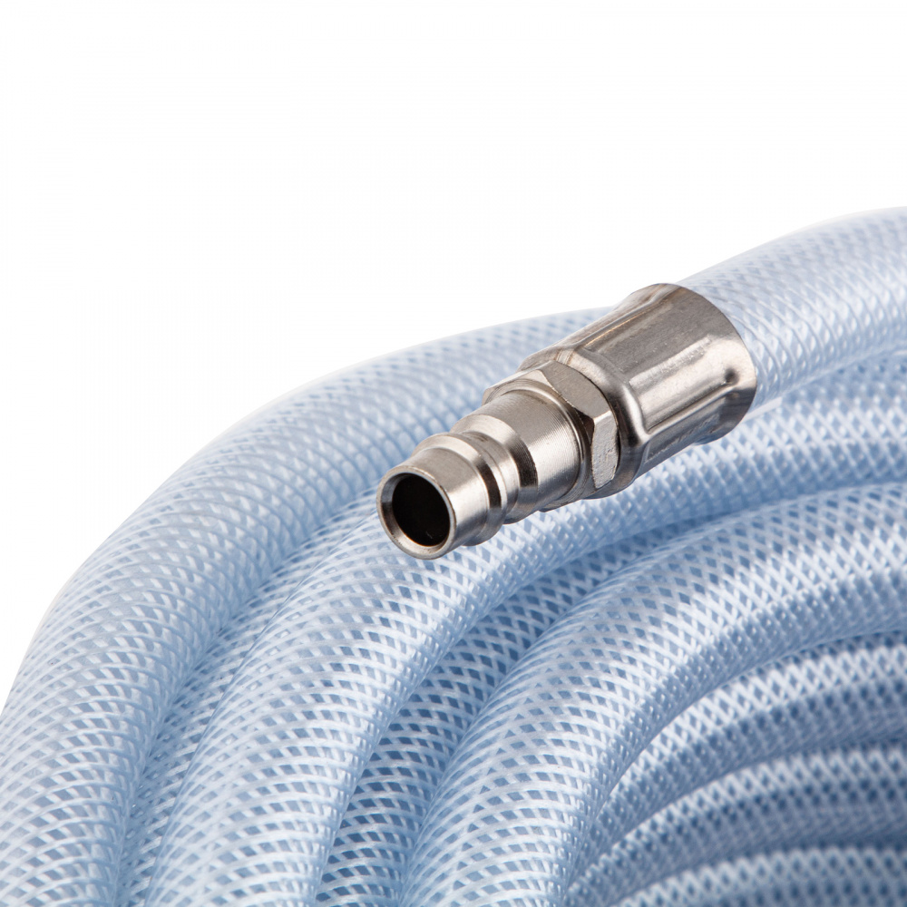 Шланг можно быстро подключить к компрессору и пневматическим инструментам благодаря быстросъемным соединениям типа рапид.