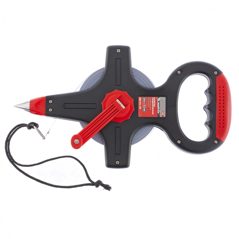 Рулетка снабжена двухкомпонентной рукояткой, обеспечивающей надежный захват и удобное хранение инструмента.