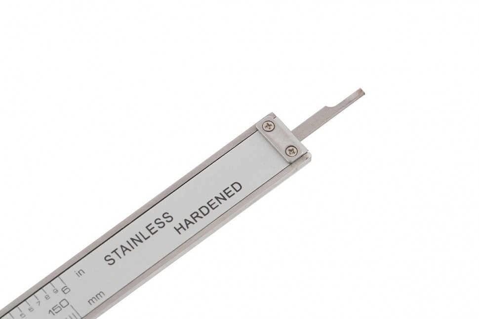 Штангенциркуль из инструментальной нержавеющей стали прочен и устойчив к коррозии, поэтому прослужит долго.