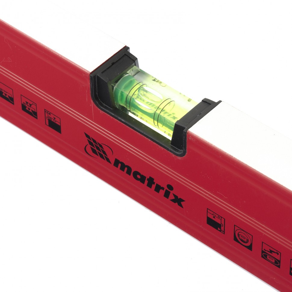 Алюминиевый магнитный уровень Matrix 34704 усиленной конструкции, длиной 400 мм, с фрезерованной рабочей поверхностью, оснащен 3 глазками и одним зеркальным отражателем. Позволяет выявить отклонения от вертикали, горизонтали и угла 45°. Встроенный зеркальный глазок облегчает считывание показаний.