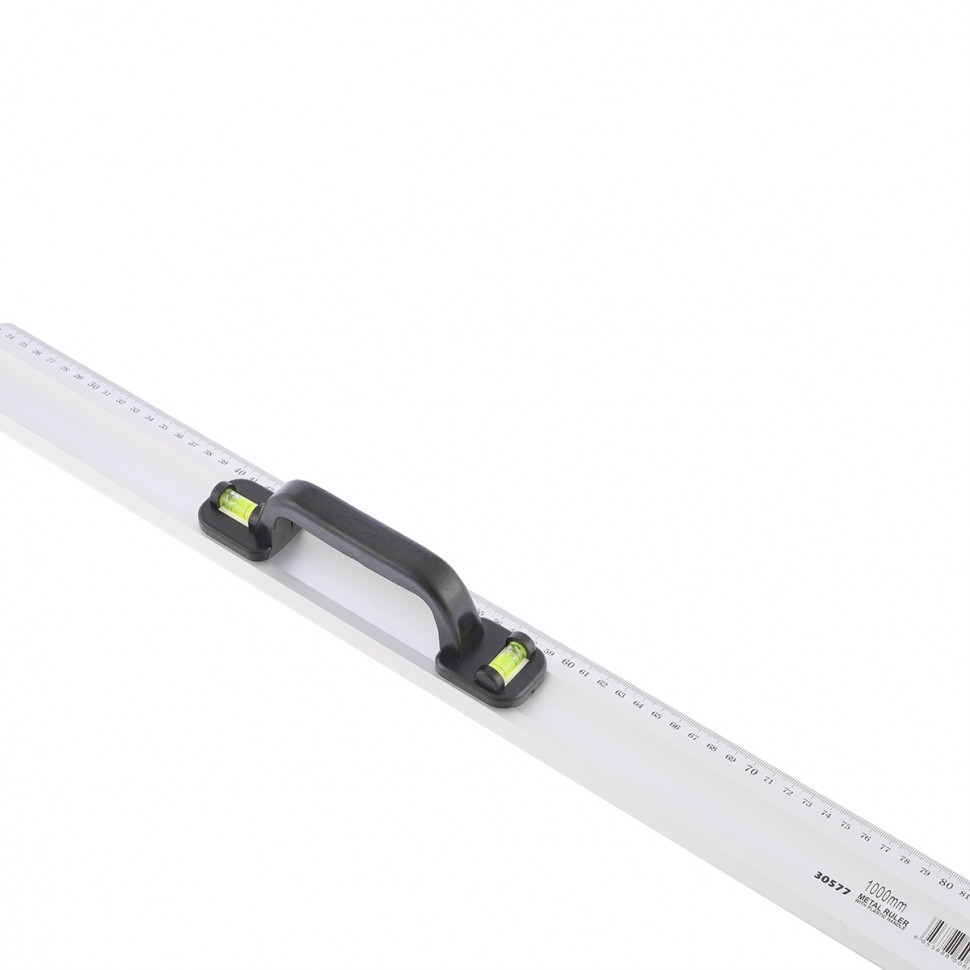 Металлическая линейка-уровень Matrix 30577 с пластмассовой ручкой и 2 глазками имеет шкалу длиной 1000 мм и предназначена для разметки материалов и измерения различных предметов. 2 жидкостных глазка позволяют определить степень отклонения поверхностей от вертикали и горизонтали. Линейка используется во время строительных и ремонтных работ, также будет полезна при установке мебели и монтаже навесного оборудования.