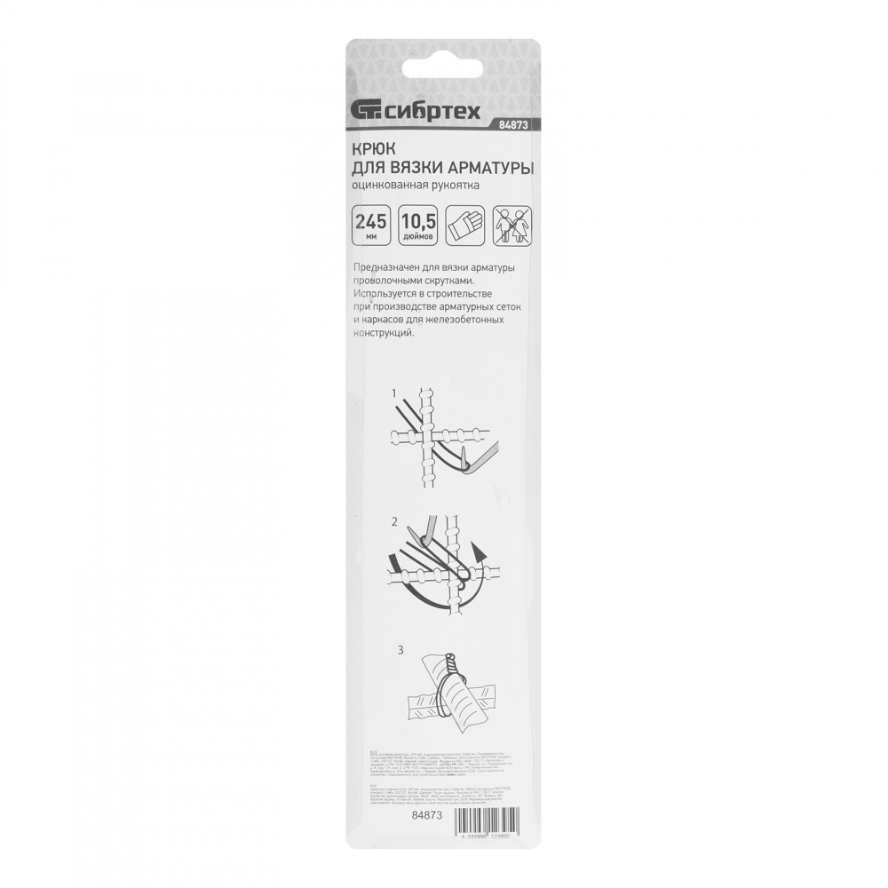 Крюк Сибртех 84873 длиной 245 мм, с оцинкованной рукояткой, служит для вязки арматуры. Позволяет соединить прутья, создать каркас и сетку. Крюк отличается простотой конструкции и не требует специальных навыков использования. Пригодится в быту и на строительной площадке.