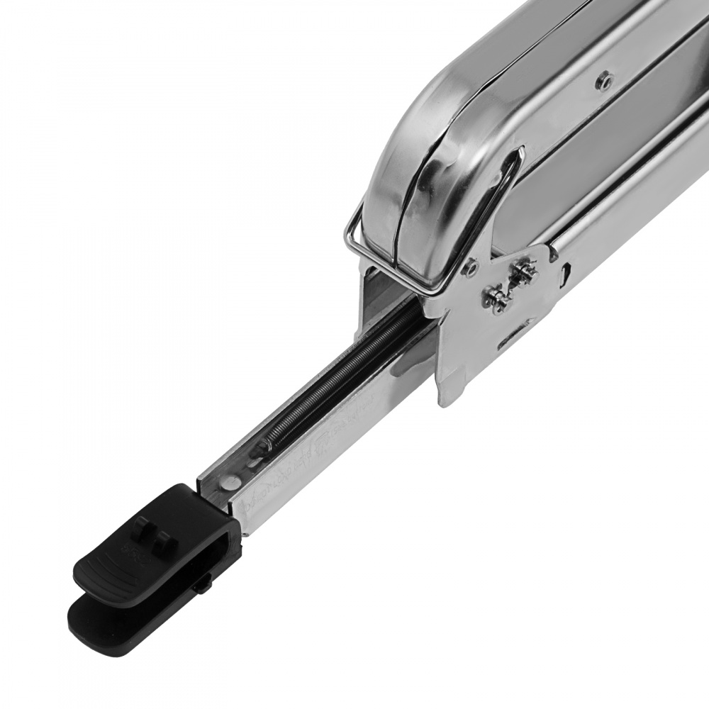 Безопасность хранения и транспортировки — скоба-фиксатор удерживает рукоятку в нерабочем положении, предотвращая самопроизвольное срабатывание степлера.
