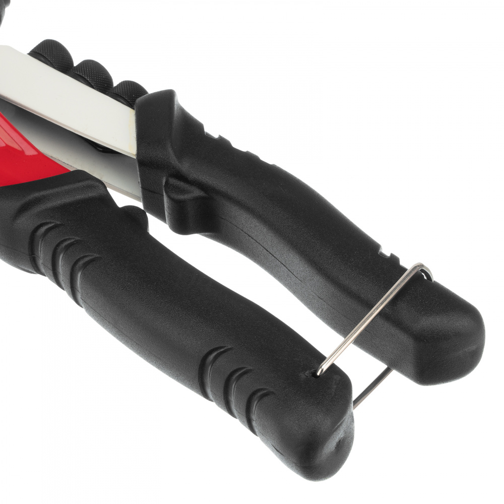 Эргономичность — рукоятки с рельефными накладками из ПВХ и ограничительными упорами не выскальзывают из ладони, а за счет малого веса 528 г заклепочником можно долго работать без усталости.