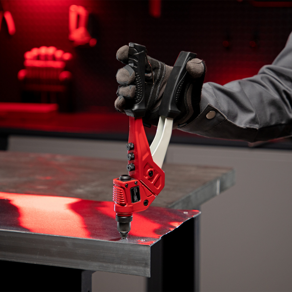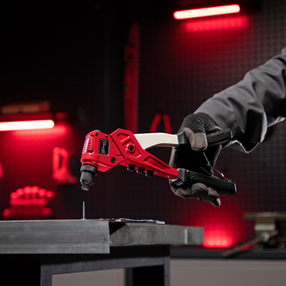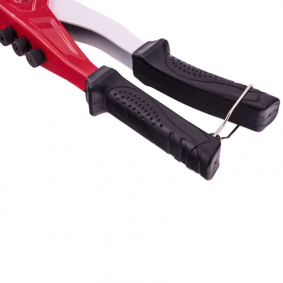 Заклёпочник ручной литой Matrix PRO 40547 длиной 290 мм, поворотный 0-360 градусов, используется для создания неразъёмных соединений с помощью вытяжных заклёпок типоразмера 2,4-4,8 мм. Голова инструмента вращается на 360 градусов, что упрощает работу в стеснённых условиях. Заклёпочник пригодится на производстве, в ремонтной мастерской или в быту.