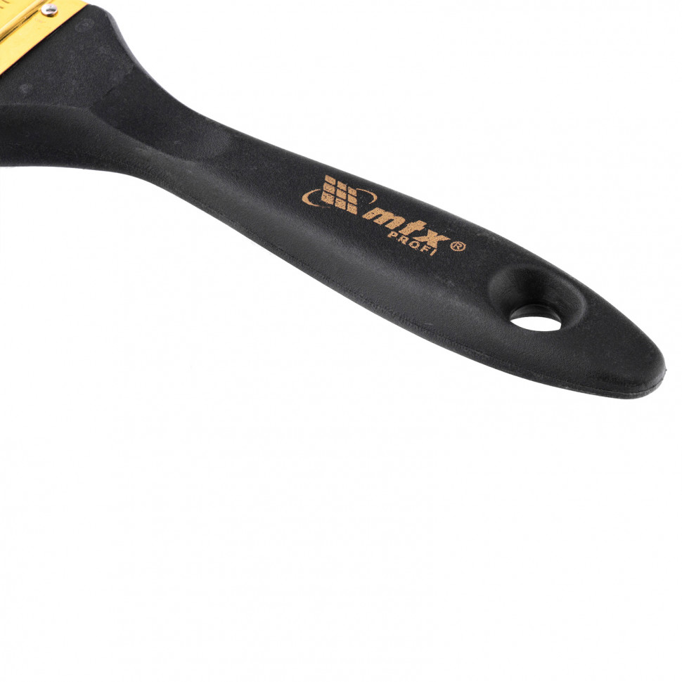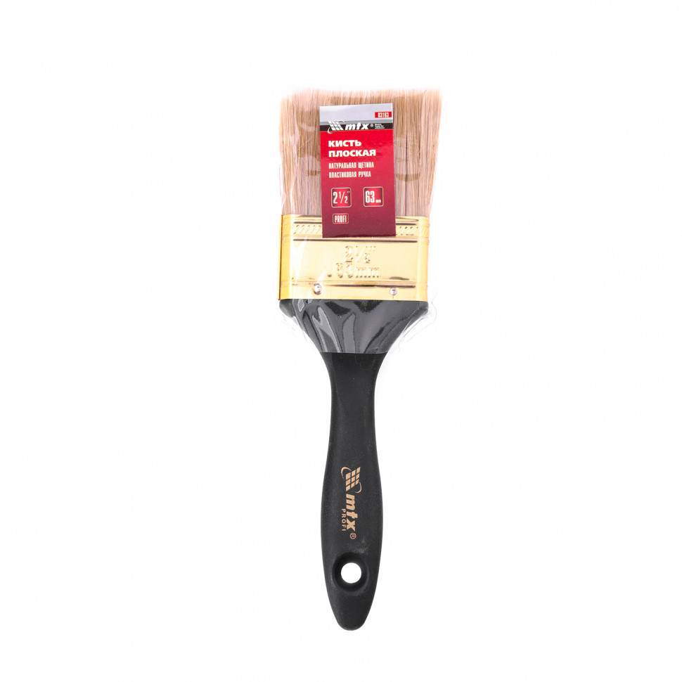 Плоская кисть «Профи» MTX 83163, 2,5 дюйма, с натуральной щетиной и пластмассовой ручкой, рассчитана на профессиональное использование при проведении малярных работ. Натуральная щетина с увеличенной плотностью набивки универсальна по своему применению и подходит для нанесения различных типов ЛКМ, в том числе с содержанием растворителей. Кисть шириной 63 мм применяется при необходимости окрашивания небольших участков .