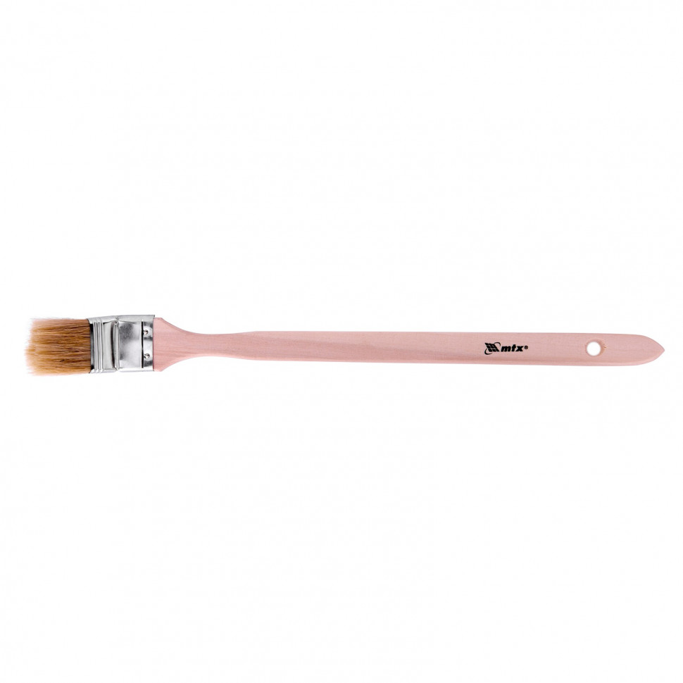 Радиаторная кисть MTX 83843 шириной 1,5 дюйма, с натуральной щетиной и деревянной ручкой, используется для окрашивания радиаторов водяного отопления, металлических проволочных конструкций, труб, а также углов и стыков стен. Решение этих задач облегчает удлиненная ручка изогнутой формы. Натуральная щетина устойчива к агрессивным средам, поэтому кисть применяется с эмалями и масляными красками.