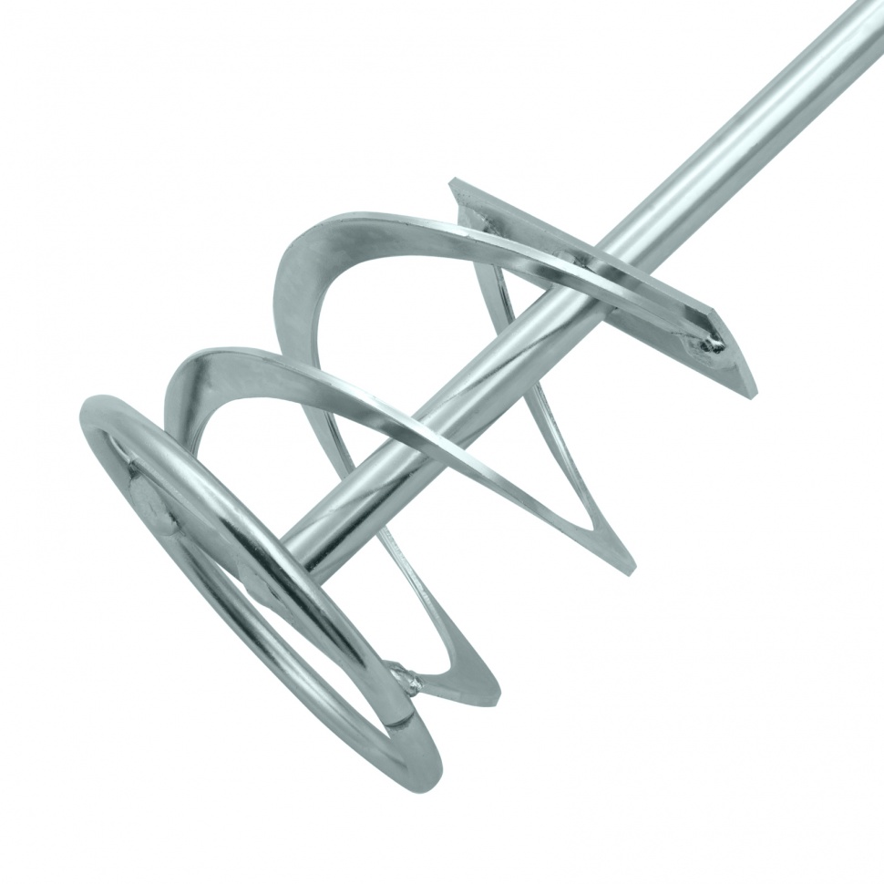 Оцинкованный миксер для красок и штукатурных смесей Denzel 848827, 80 х 400 мм, с хвостовиком SDS Plus, используется для замешивания строительных растворов. Спиралевидная рабочая часть перемешивает состав снизу вверх, поэтому все компоненты распределяются в нем равномерно. Защитное кольцо предотвращает повреждение емкости для размешивания состава. Штукатурный миксер устанавливается в патрон перфоратора SDS Plus и применяется во время строительных и отделочных работ.