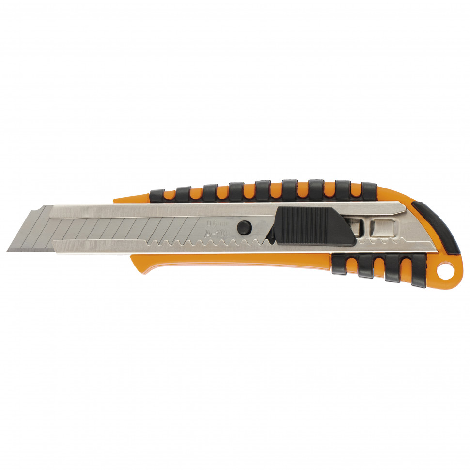 Нож Sparta 78939 с выдвижным лезвием шириной 18 мм выполнен в пластиковом двухкомпонентном корпусе с металлической направляющей. Пригодится мастерам при проведении ремонтных работ, будет полезен в быту и в частных мастерских. Острое лезвие с легкостью режет бумагу, картон, обои, линолеум, кожу и другие материалы. Лезвие не требует заточки и выдвигается на необходимую длину.