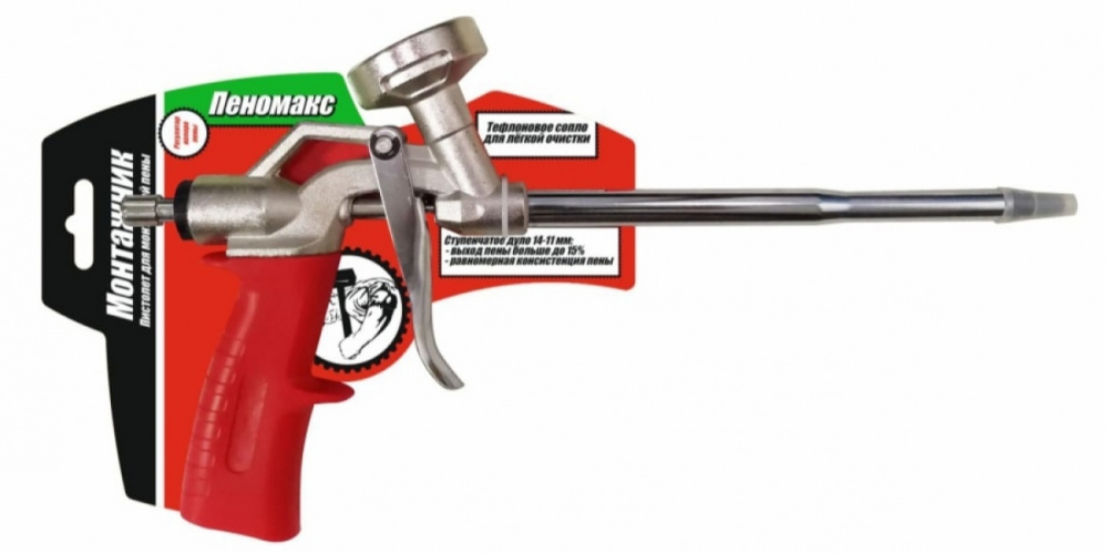 Пистолет для монтажной пены ПЕНОМАКС торговой марки "Монтажник" используется при проведении монтажных и строительных работ с целью заполнения полостей, отверстий и трещин в материалах. Имеет тефлоновое сопло для легкой очистки инструмента от пены. Изготовлен из качественных материалов, что гарантирует долгий срок службы.