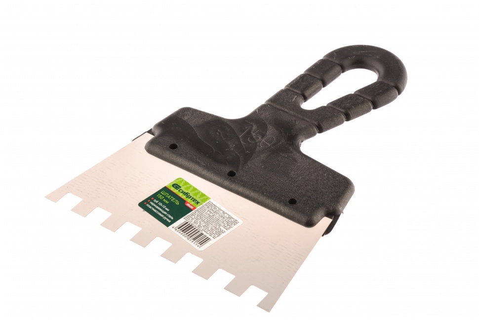 Шпатель Sparta 85480 шириной 150 мм, из нержавеющей стали, с пластмассовой ручкой и зубьями 10 х 10 мм, применяется для равномерного нанесения клея при укладке мелкоформатной плитки, мозаики и т.д. Квадратные зубья облегчают нанесение клеевого состава, позволяя ровно и экономно распределять его по поверхности. Зубья размером 10 х 10 мм рассчитаны на плитку площадью 900-2500 см2.
