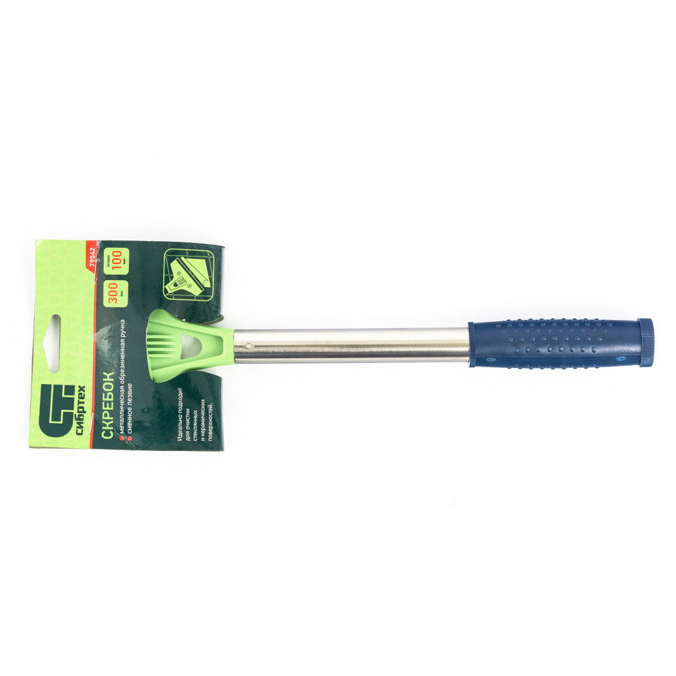 Скребок Сибртех 79542 длиной 300 мм, с фиксированным лезвием шириной 100 мм, с металлической обрезиненной ручкой, имеет двустороннее лезвие, острой стороной которого удобно счищать старую краску, монтажную пену, наклейки и другие загрязнения. Тупой стороной лезвия скребок эффективно удаляет остатки строительных смесей, цемента и шпаклевки. Инструмент можно использовать для плитки, стеклянных и керамических поверхностей. Он имеет сменное полотно и рассчитан на длительное использование. Скребок пригодится во время ремонта, а также будет полезен в быту.