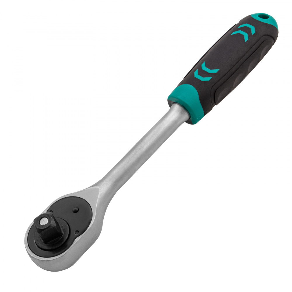 Двухкомпонентная эргономичная рукоятка &mdash трещотка удобно и надежно лежит в руке.