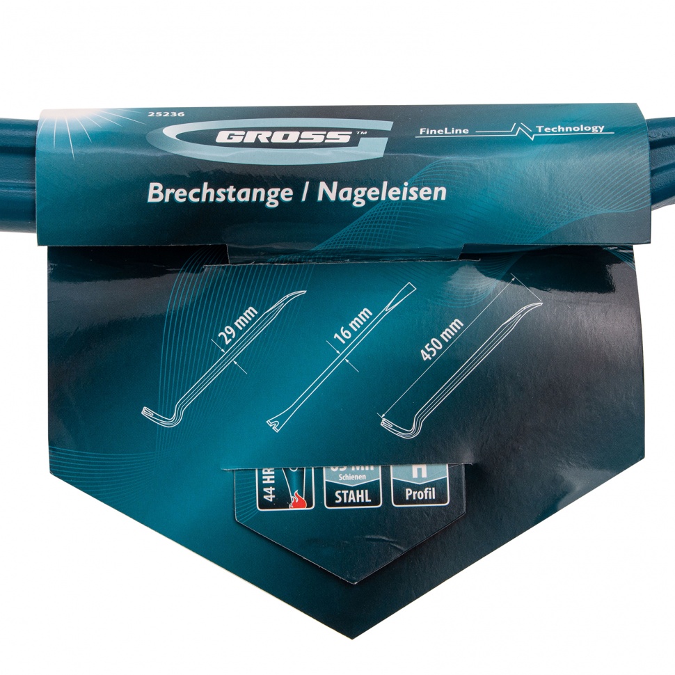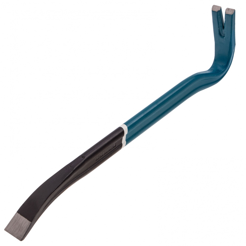 Лом-гвоздодер Gross 25236 с двутавровым профилем, 450 х 29 х 16 мм, используется для извлечения гвоздей. Демонтажная рабочая часть позволяет разбирать деревянную тару, заборы, кровли и другие конструкции. Также инструмент может применяться в качестве рычага для поднимания и перемещения тяжеловесных грузов — двутавровый профиль усиливает его на момент излома при повороте на 90 градусов. Лом-гвоздодер будет полезен при проведении строительных и ремонтных работ, пригодится также и в домашнем хозяйстве.