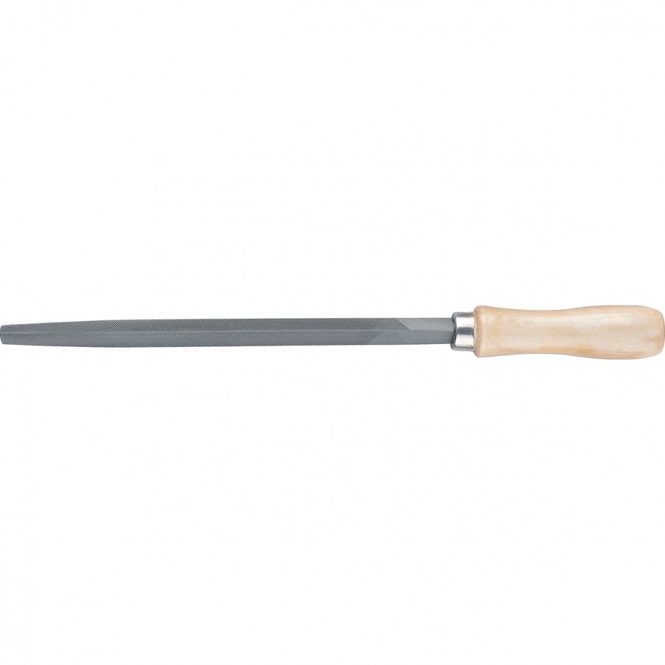 Трехгранный напильник Сибртех 16026 с деревянной ручкой, длина рабочей части 200 мм, используется для доводки металлических деталей. Им опиливают грани, внутренние углы, треугольные отверстия. Тип насечки — №2, поэтому инструмент рекомендован для промежуточной шлифовки после опиливания драчевым напильником. Используется в слесарном деле и в бытовых целях.