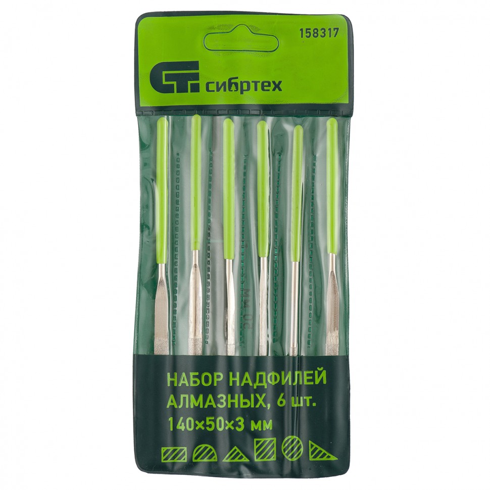 Набор алмазных надфилей Сибртех 158317 из 6 шт., 140 x 50 x 3 мм, предназначен для опиливания твердых поверхностей — стекла, металла, камня, керамики. В комплекте надфили с самыми распространенными профилями, благодаря чему можно обрабатывать плоские детали, пазы, углы, отверстия, сложные грани и рельефные поверхности. Набор будет полезен при проведении слесарных или ремонтно-отделочных работ, пригодится и в быту.