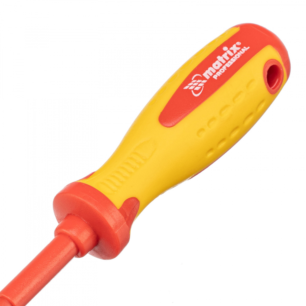 Отвертка Matrix Insulated 12924, PH0 x 75 мм, из стали CrMo, до 1000 В, с двухкомпонентной рукояткой, рассчитана на работу с крепежом типа Phillips «крест». Она пригодится профессиональным мастерам при осуществлении ремонтных работ и обслуживании электрооборудования. Стержень длиной 75 мм оптимален для монтажа/демонтажа легкодоступного крепежа и крепежа, расположенного в углублениях. Важно — рукоятка имеет диэлектрическое покрытие до 1000 В, однако техника безопасности запрещает работать под напряжением!