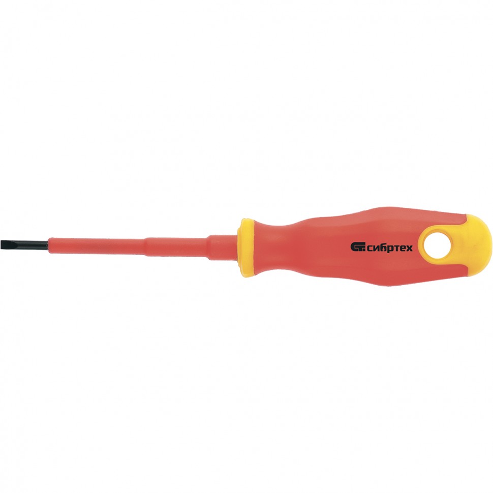 Диэлектрическая отвертка Сибртех 12932, SL4 х 100 мм, из стали CrV, с двухкомпонентной рукояткой, используется для монтажа/демонтажа крепежных элементов типа Slotted «минус». Отвертка рассчитана на полупрофессиональное применение: замену розеток, подключение электросчетчиков и т.д. Длина стержня 100 мм удобна для работы с крепежом на поверхности и в углублениях. Внимание — техника безопасности запрещает выполнять работы под напряжением!