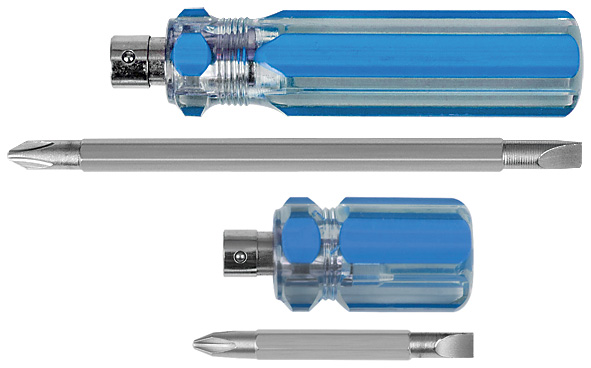 Отвертка с переставным жалом, шестигранное жало (PH/SL) из хром-ванадиевой стали, пластиковая ручка.