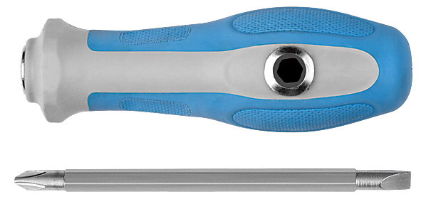 Дополнительное установочное отверстие позволяет переставить шестигранное жало в Т-образное положение. Материал: жало из хромванадиевой стали, пластиковая обрезиненная ручка. Упаковка: п/э пакет с картонным подвесом.