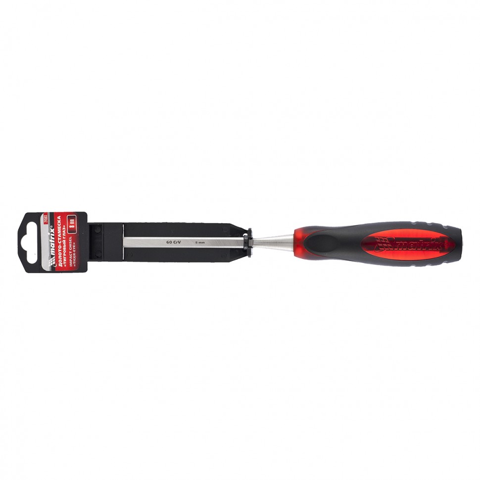 Долото-стамеска Matrix «Тигровый глаз» 24503 с полотном шириной 8 мм и двухкомпонентной обрезиненной рукояткой используется в столярном и плотницком деле, в производстве мебели. Позволяет вырезать углубления, формировать пазы, зачищать шипы и гнезда, снимать фаски. Инструмент выдерживает удары киянкой или молотком, т. к. металлический затыльник защищает его от деформации. Долото относится к профессиональному ручному инструменту, но может применяться и в домашних условиях.
