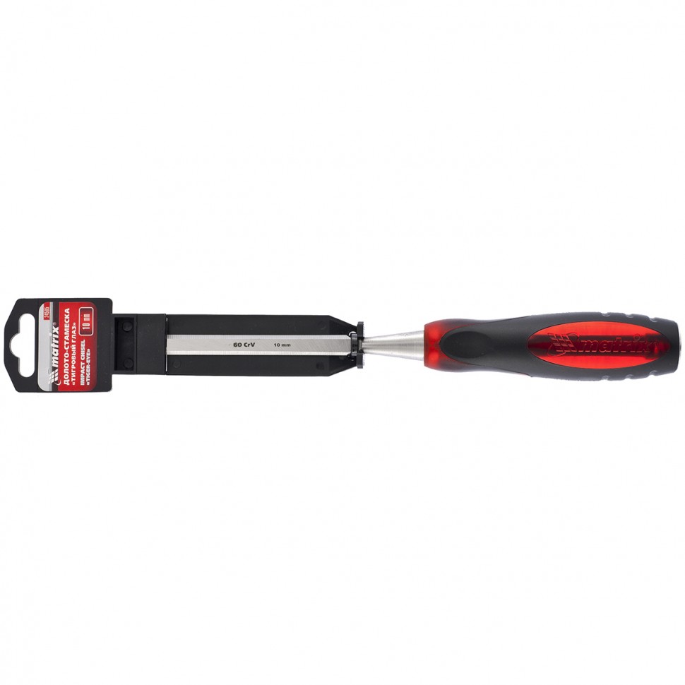 Долото-стамеска Matrix «Тигровый глаз» 24505 с полотном шириной 10 мм и двухкомпонентной обрезиненной рукояткой используется в столярном и плотницком деле, в производстве мебели. Позволяет вырезать углубления, формировать пазы, зачищать шипы и гнезда, снимать фаски. Инструмент выдерживает удары киянкой или молотком, т. к. металлический затыльник защищает его от деформации. Долото относится к профессиональному ручному инструменту, но может применяться и в домашних условиях.
