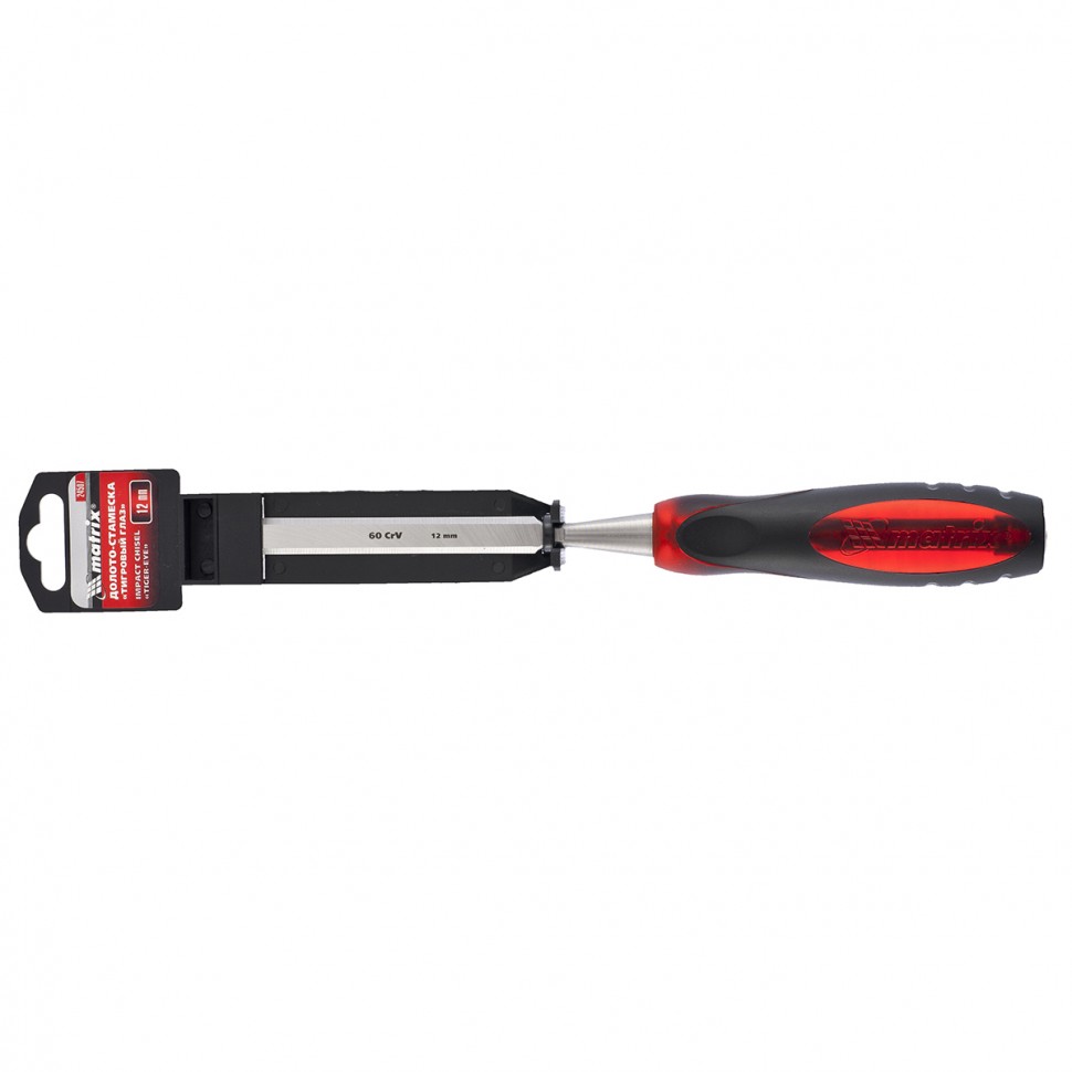 Долото-стамеска Matrix «Тигровый глаз» 24507 с полотном шириной 12 мм и двухкомпонентной обрезиненной рукояткой используется в столярном и плотницком деле, в производстве мебели. Позволяет вырезать углубления, формировать пазы, зачищать шипы и гнезда, снимать фаски. Инструмент выдерживает удары киянкой или молотком, т. к. металлический затыльник защищает его от деформации. Долото относится к профессиональному ручному инструменту, но может применяться и в домашних условиях.