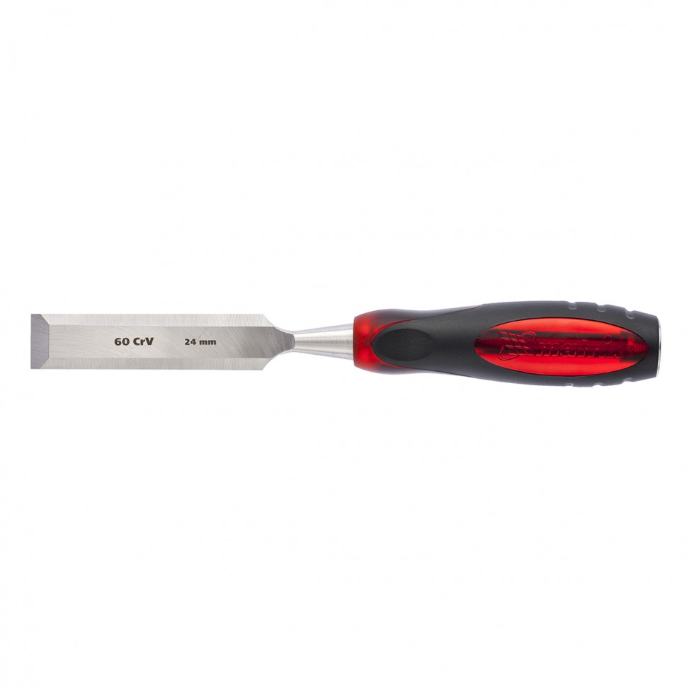 Долото-стамеска Matrix «Тигровый глаз» 24517 с полотном шириной 24 мм и двухкомпонентной обрезиненной рукояткой используется в столярном и плотницком деле, в производстве мебели. Позволяет вырезать углубления, формировать пазы, зачищать шипы и гнезда, снимать фаски. Инструмент выдерживает удары киянкой или молотком, т. к. металлический затыльник защищает его от деформации. Долото относится к профессиональному ручному инструменту, но может применяться и в домашних условиях.