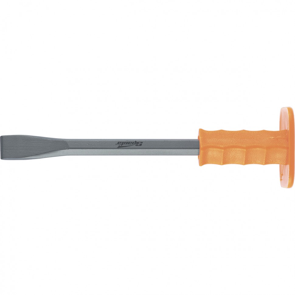 Зубило с протектором Sparta Master 187605, 300 х 24 мм, имеет классическую плоскую форму и позволяет проводить широкий спектр работ &mdash от демонтажных до скульптурных. Оно пригодится для обработки таких материалов, как кирпич, бетон, камень. Защитный резиновый протектор обеспечивает безопасность при использовании инструмента.