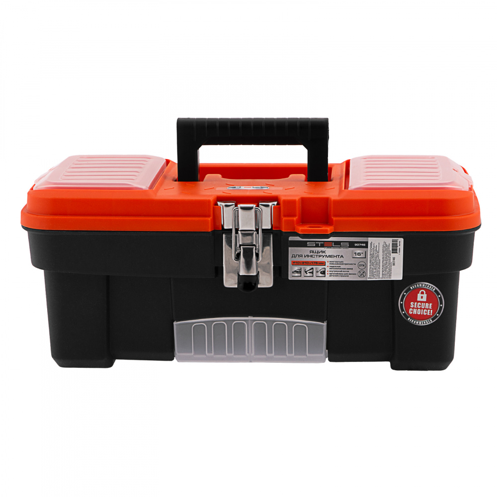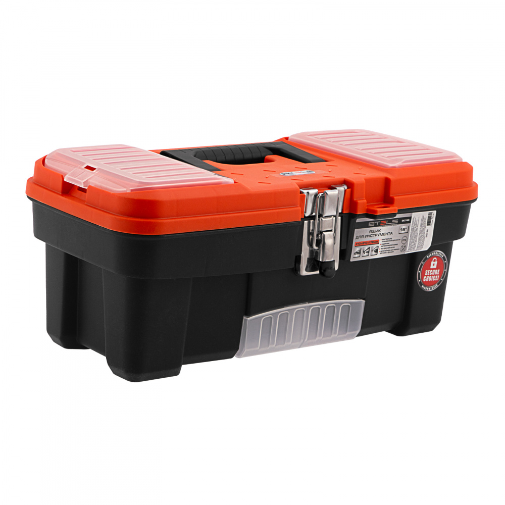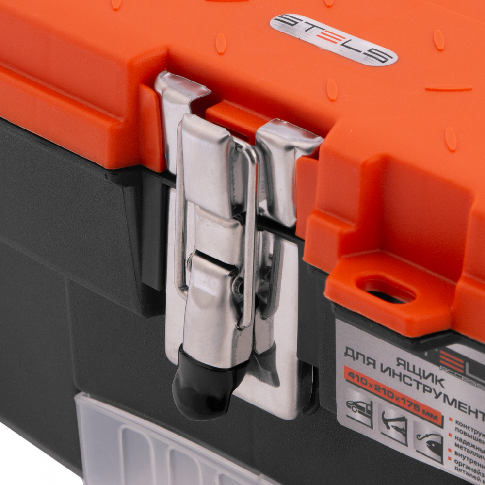 Ящик для инструмента Stels 90746 размером 16" (410 х 210 х 175 мм), с металлическими замками, — альтернатива коробке для инструментов. В нем можно расположить ручной инструмент, крепеж, хозяйственные мелочи, а также рыболовные снасти. В крышке имеются встроенные органайзеры, внутри ящика — выкидной лоток с отсеками для мелких деталей, что увеличивает функциональность изделия. Ящик удобно брать в поездки, также он пригодится дома, на даче или в гараже.