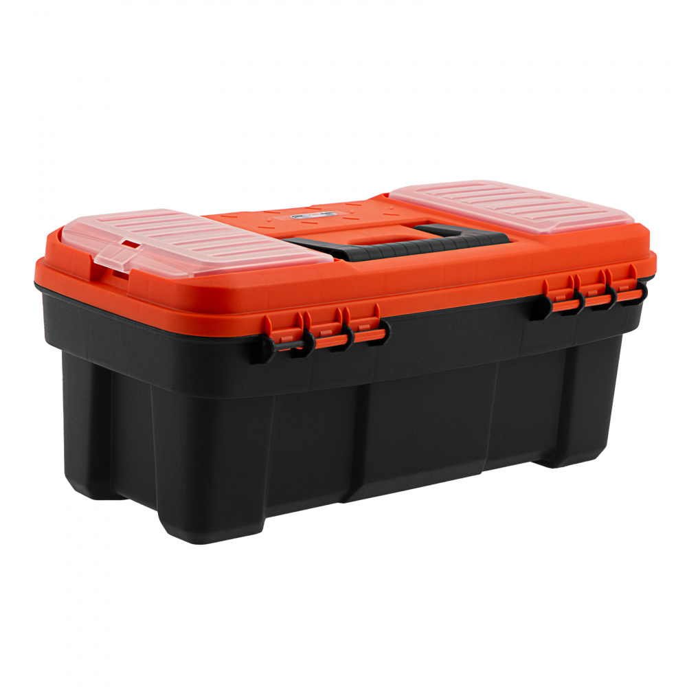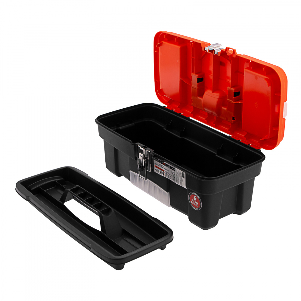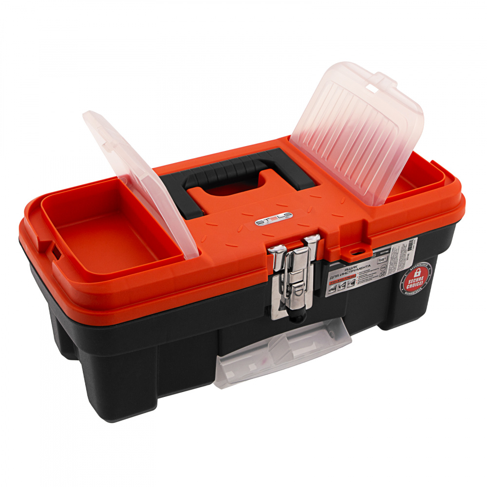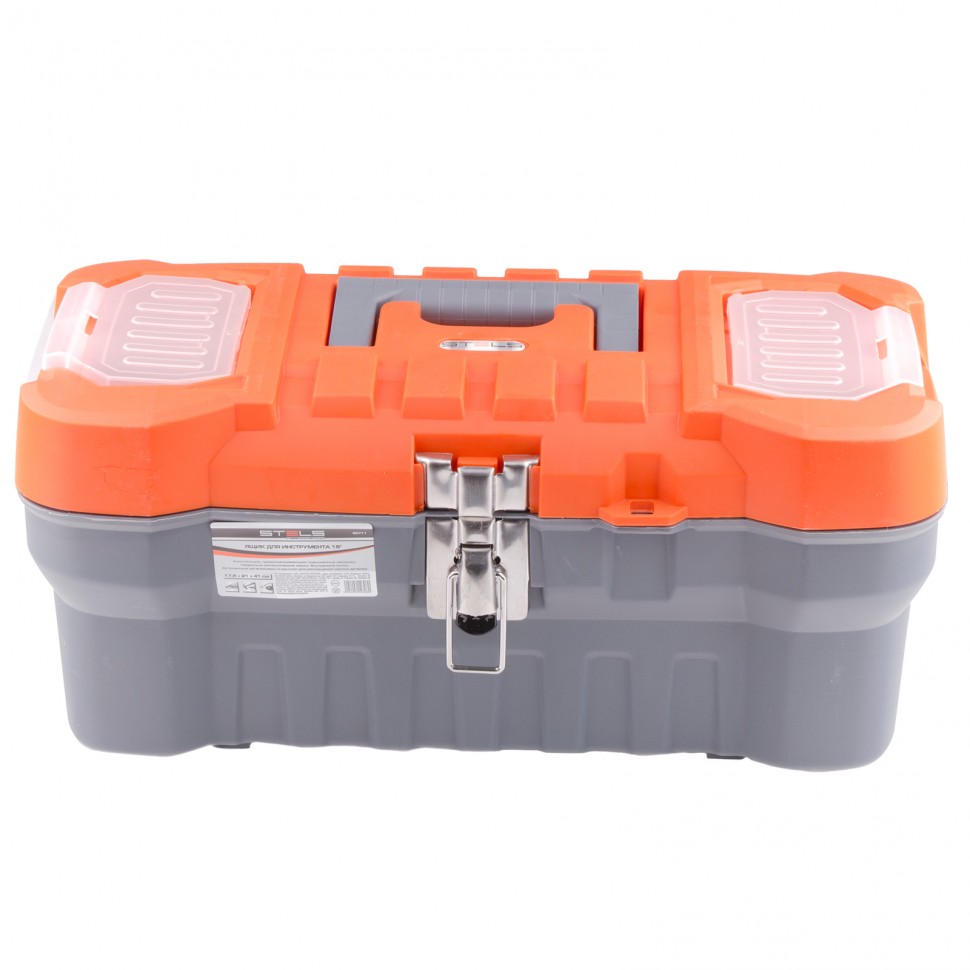 Ящик для инструмента Stels 90746 размером 16" (410 х 210 х 175 мм), с металлическими замками, — альтернатива коробке для инструментов. В нем можно расположить ручной инструмент, крепеж, хозяйственные мелочи, а также рыболовные снасти. В крышке имеются встроенные органайзеры, внутри ящика — выкидной лоток с отсеками для мелких деталей, что увеличивает функциональность изделия. Ящик удобно брать в поездки, также он пригодится дома, на даче или в гараже.