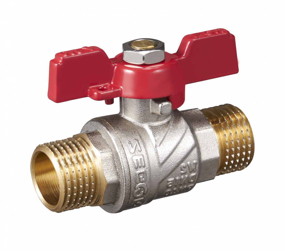 Кран шаровый, латунный, 1/2″ PN40 (CW617N) полнопроходной, ручка бабочка, подключение штуцер-штуцер, служит для установки в трубопроводы с питьевой или хозяйственной водой, горячим водоснабжением, отоплением, сжатым воздухом, жидким углеводородом, а также техническими жидкостями, которые нейтральны к материалам крана. Применяется в качестве запорной арматуры.