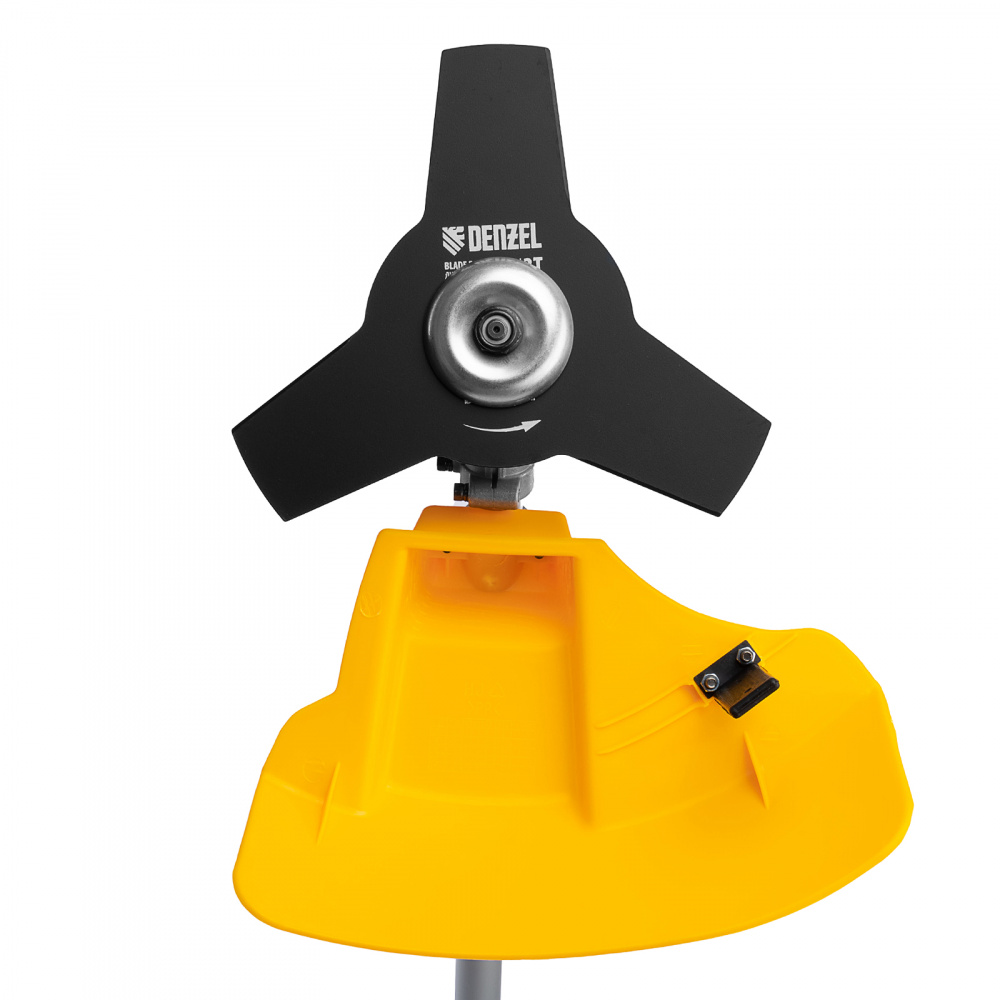 Дополнительные возможности — можно приобрести и установить на триммер диск Denzel 96323 с шириной скашивания 230 мм для быстрого удаления растительности с жесткими стеблями (полыни, крапивы, лебеды), 96328 для скашивания молодых побегов кустарника диаметром до 3 мм, 96340 для срезания борщевика, кустарника и молодых побегов деревьев с диаметром стволов до 10 мм.