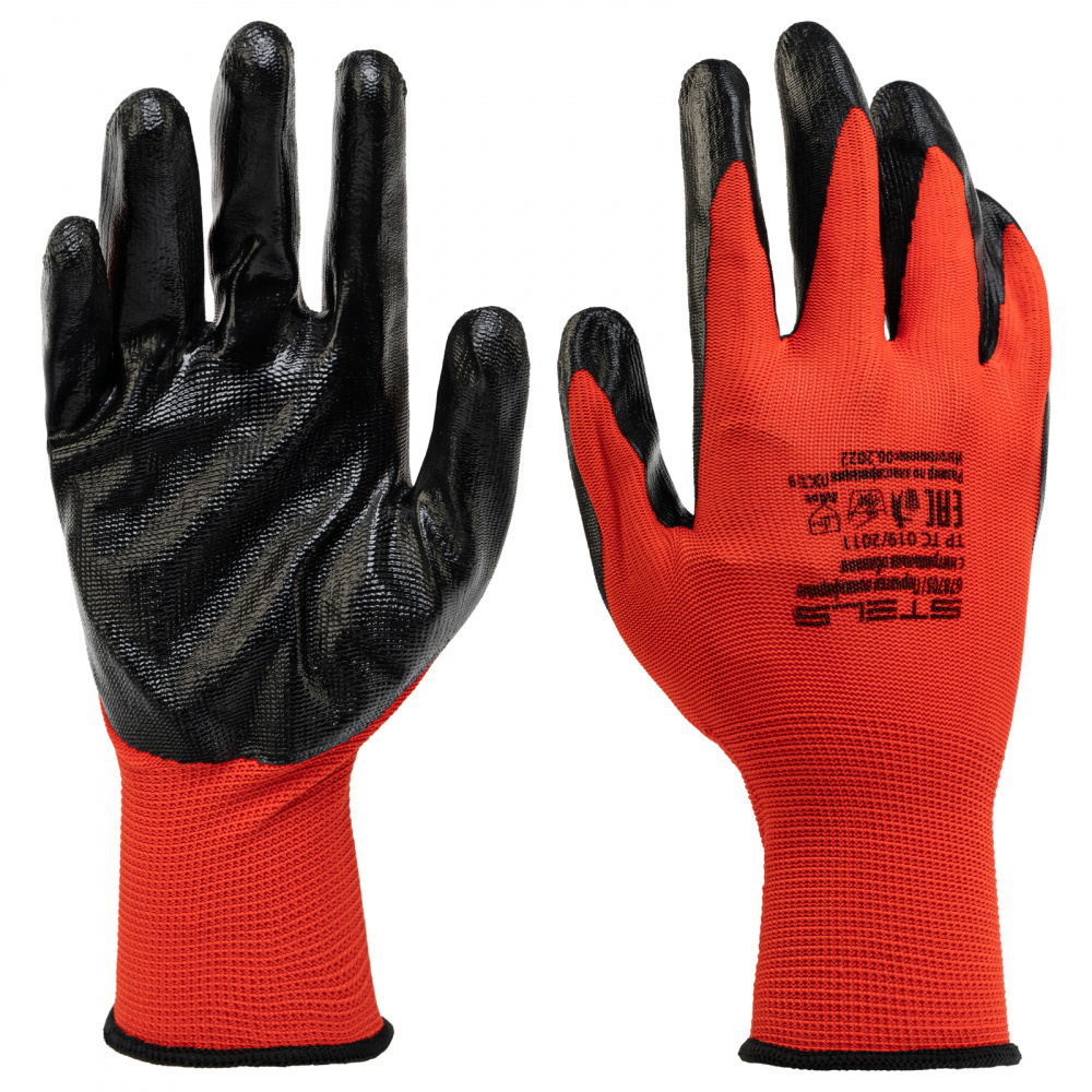 Полиэфирные перчатки Сибртех с нитрильным покрытием, предназначены для защиты рук от механических воздействий и общепроизводственных загрязнений при выполнении автослесарных и ремонтных работ