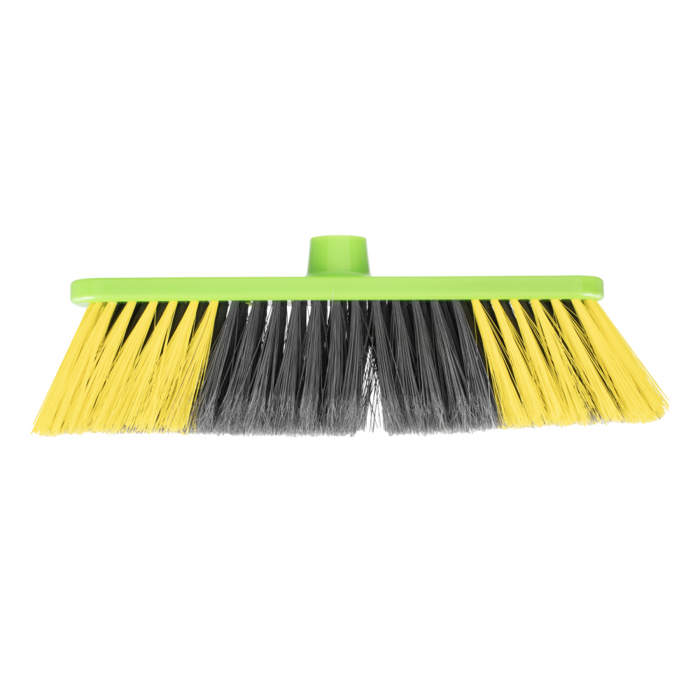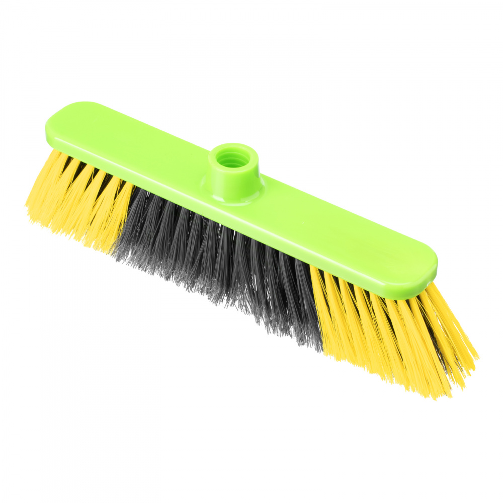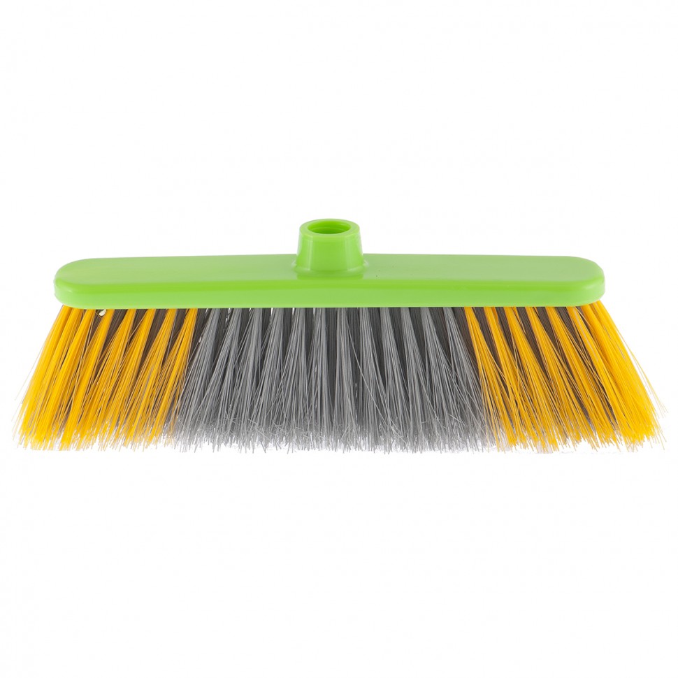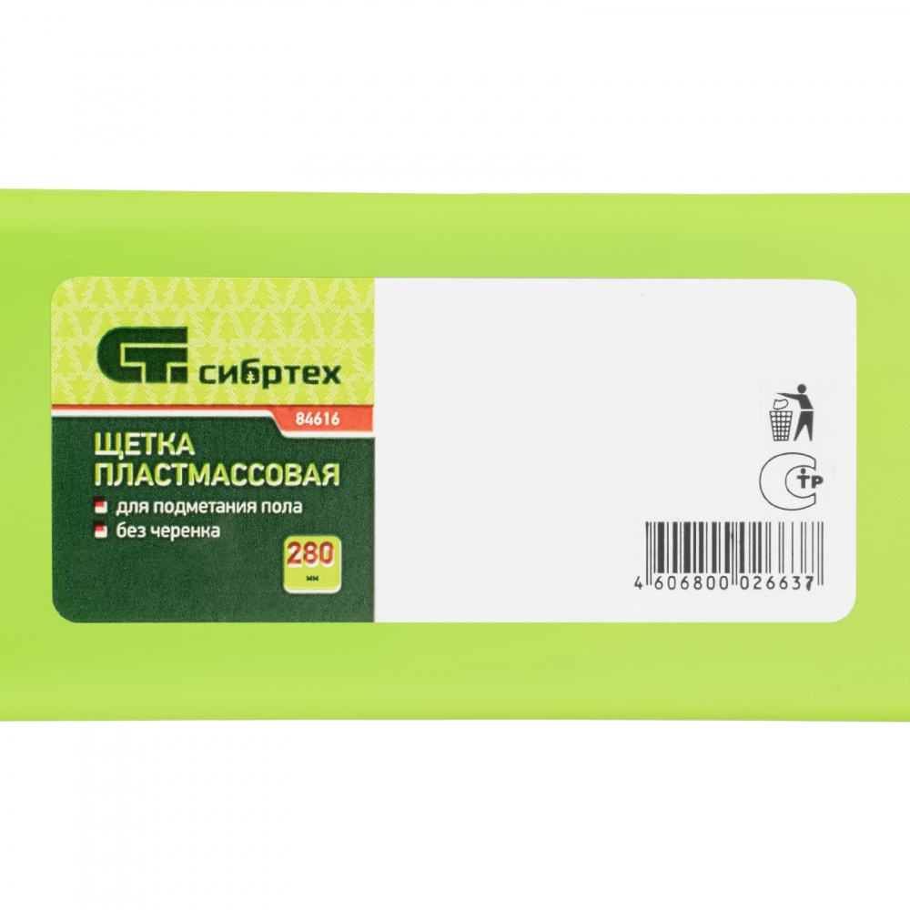 Пластмассовая щетка Сибртех 84616 длиной 28 см, без черенка, предназначена для подметания пола. Подходит для паркета, линолеума, ламината, плитки и других видов напольных покрытий. Длинный ворс позволяет эффективно собирать пыль и мелкий мусор. Инвентарь весит 246 г, что удобно для длительной уборки. Черенок приобретается отдельно, рекомендуемые модели — 93527, 93526, 93525, 93524.