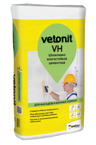 Шпаклевка влагостойкая цементная. Финишное выравнивание фасадов, стен и потолков под облицовку плиткой, оклейку обоями и покраску. Для наружных и внутренних работ. Ручное и механизированное нанесение. Подходящие основания: поверхности, обработанные цементными и цементно-известковыми штукатурками, бетон, легкий бетон и пенобетон, керамзито-бетонные блоки и кирпичи, ГКЛ. Подходит для фасадов, сухих, влажных и мокрых помещений. Создает гладкую белую поверхность под окраску. Комфортна в нанесении слоев 1-3 мм благодаря пластичности.
