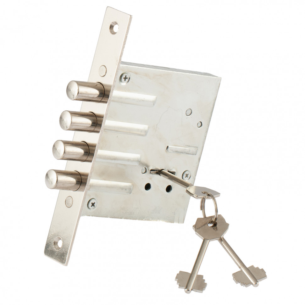 Замок врезной Сибртех ЗВ-3 91668, сувальдного типа, используется для запирания внутренних дверей жилых и хозяйственных помещений. Замок имеет 1 класс секретности — его невозможно вскрыть методом подбора ключей.